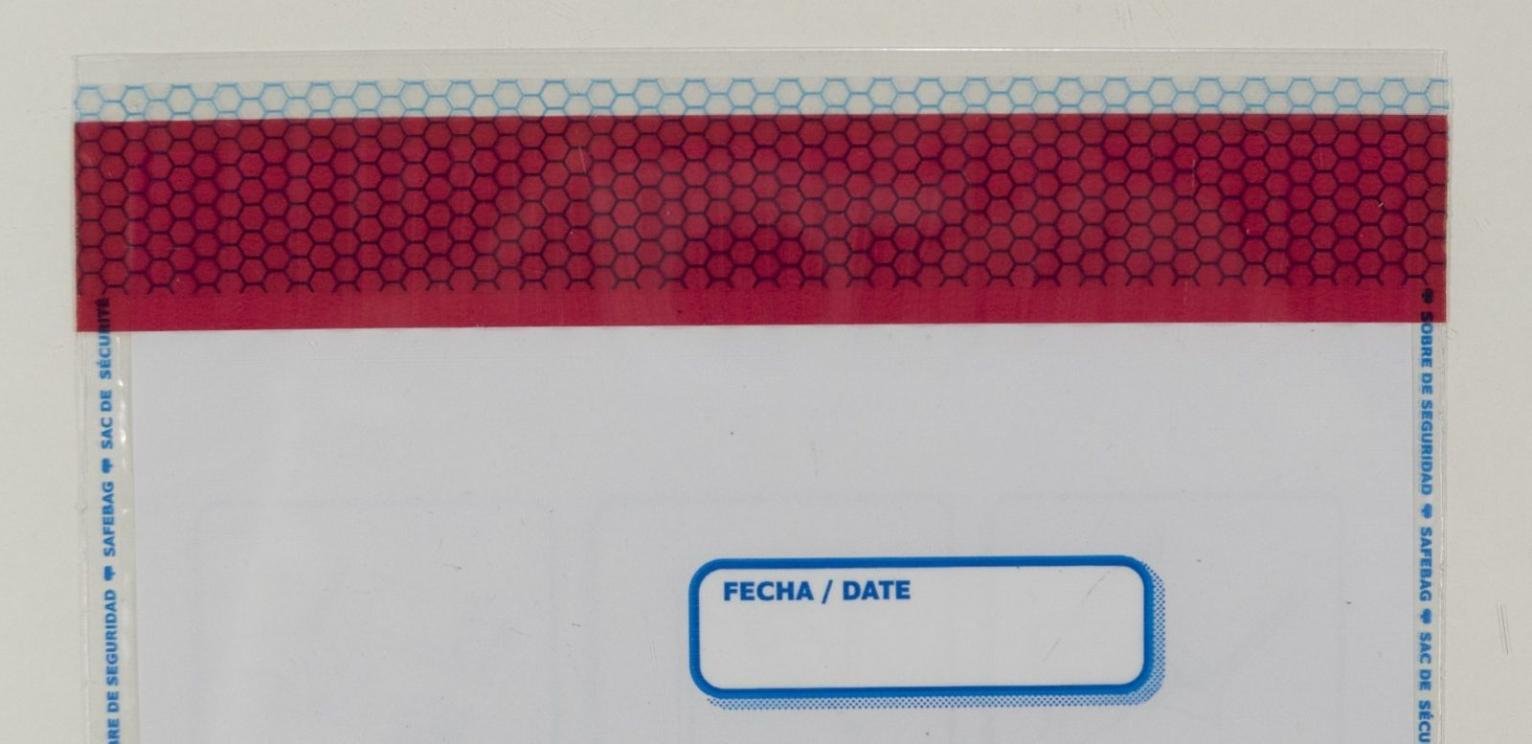 • Cierre adhesivo de alta seguridad con residuo que muestra evidencia si el sobre ha sido forzado